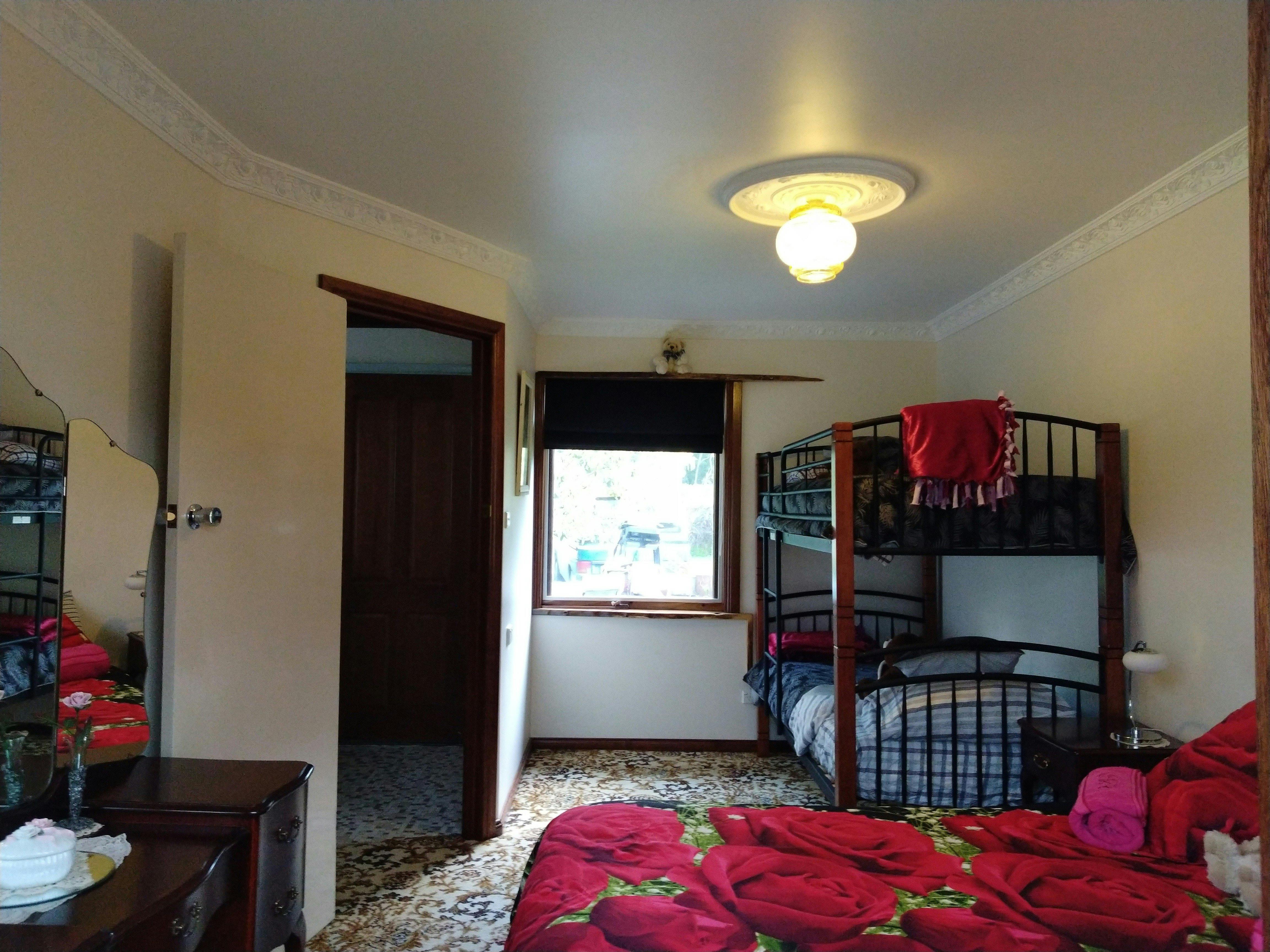 Bear Cottage (two bedrooms) sleeps up to six people, including children. It has a cool-only air conditioner and a wood heater.