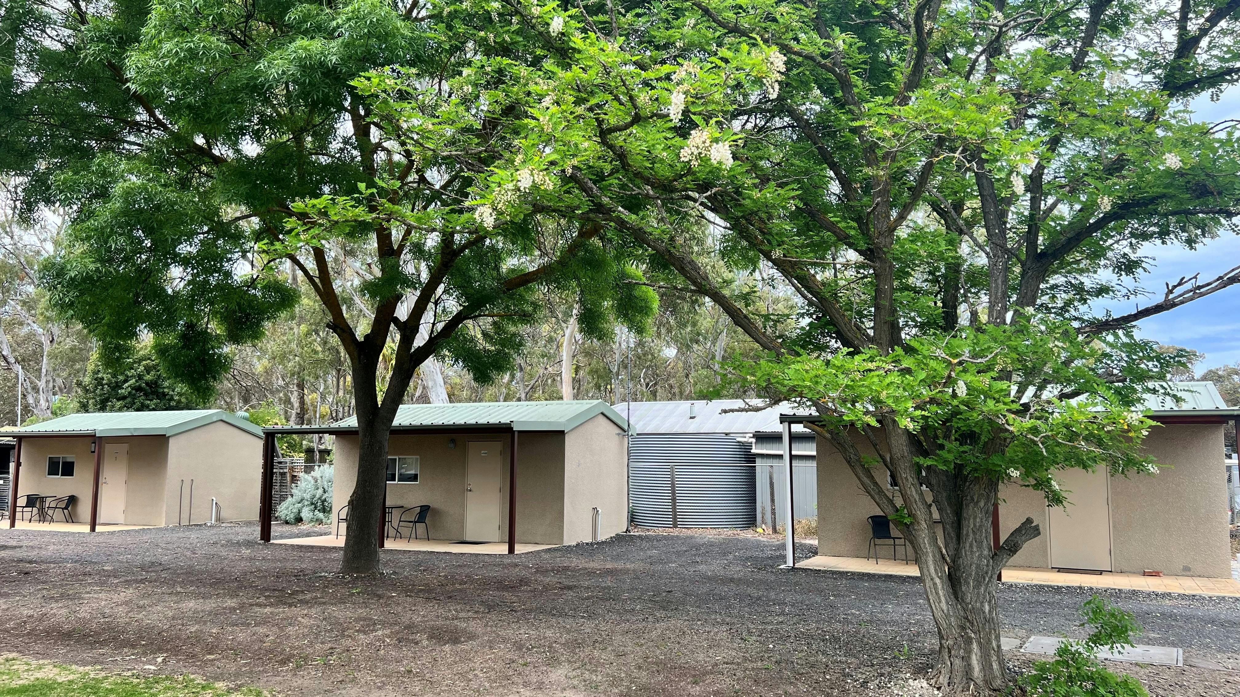 Looking for a simple stopover, try one of our three stand alone cabins. Featuring a queen bed with ensuite and kitchenette. Set in a leafy garden, wake to the kookaburra’s and tranquility of a small country town, only 10 minutes from the Adelaide to Melbourne highway.