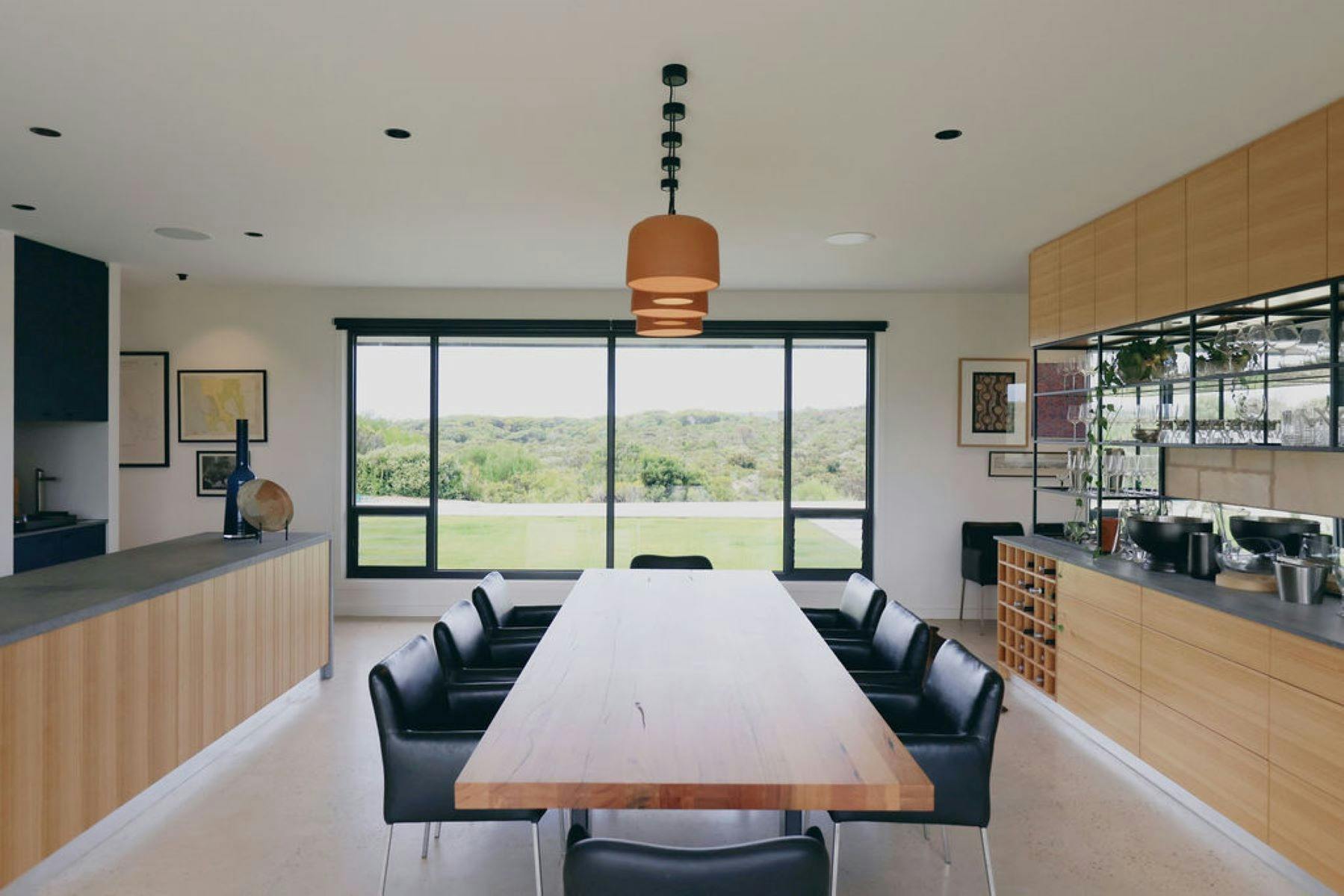 The middle of the Lodge is an open plan living and dining space, complete with bar and fire-place. Made almost entirely of glass there are stunning views across Little Dip Conservation Park and breathtaking sunsets. The communal space offers room for relaxation or interactions with other guests. Everyone is welcome to join the Lodge team for Sundowners every evening.