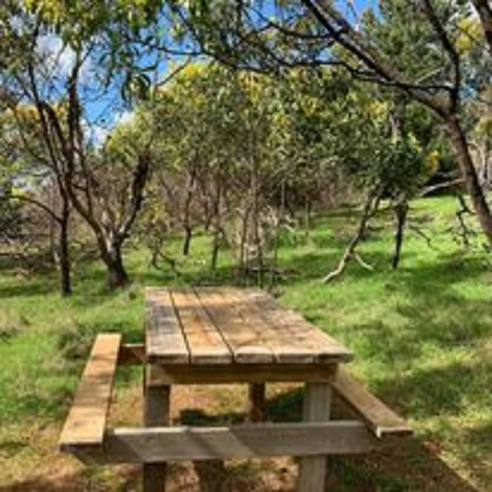 surrounding district. There is a picnic table and seating along the trail.