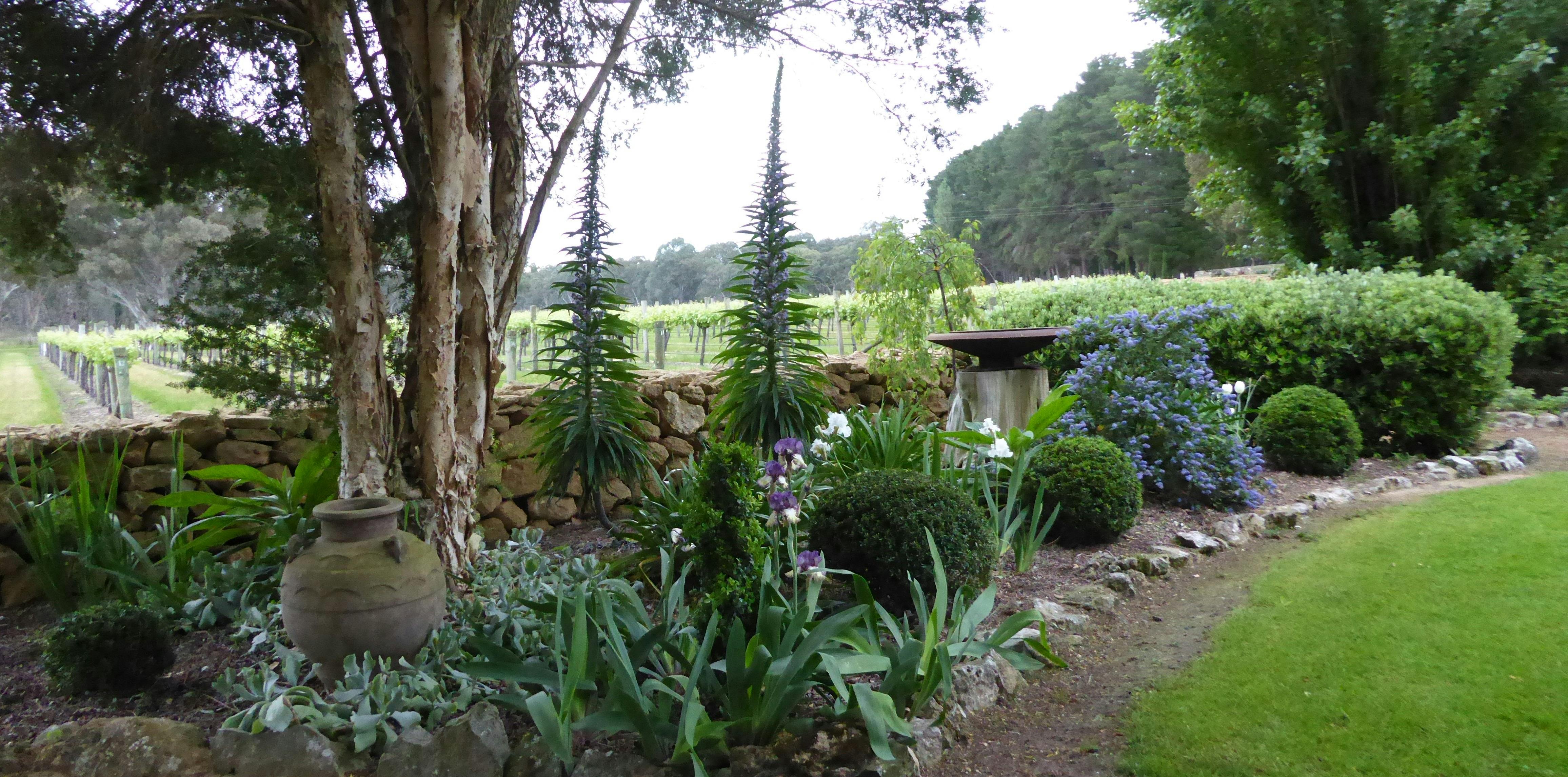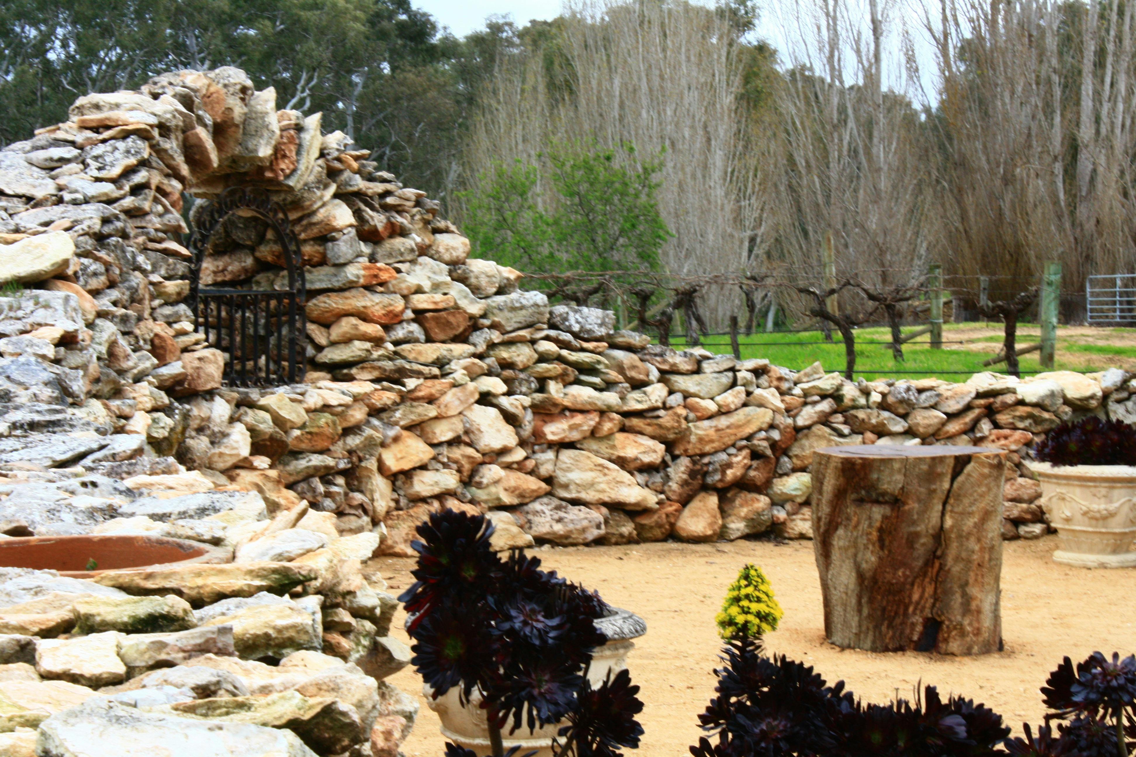 The award winning wines and spirits are available for tasting and purchase at the Cellar Door which is nestled in the famous show garden that is meticulously crafted by Glenys Mulligan that includes dry stone walls, paths, artworks and a kaleidoscope of colour produced by hundreds of roses, flowers, shrubs and trees.